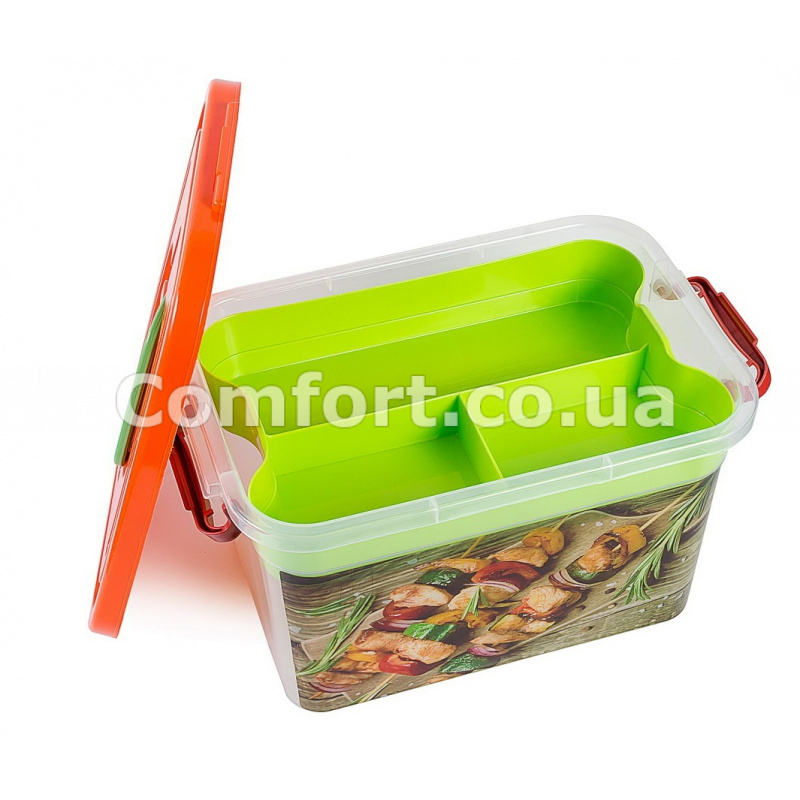 Бокс контейнер 6,3л с ручкой и вкладышем, с одной стороны декорирован ярким обалденным рисунком, изготовлен из высококачественного, пищевого пластика, который может контактировать с пищей, абсолютно безопасный для здоровья, не содержит вредных веществ. Бокс для пищевых продуктов с ручками защелками, прямоугольный с крышкой предназначен для хранения и транспортировки продуктов питания и мелких бытовых предметов, также подходит для хранения детских игрушек или других необходимых мелочей домашнего использования.