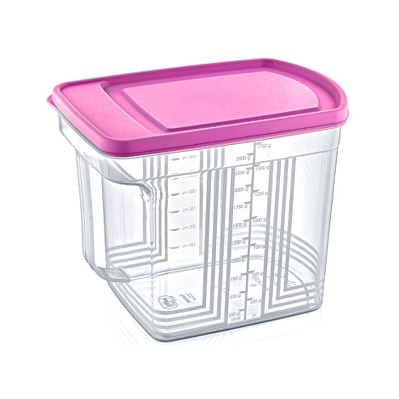 Банка для хранения сыпучих продуктов 2,5л с ручкой необходима на кухне каждой хозяйки, изготовлена из высококачественного, пищевого пластика. Емкость для сыпучих продуктов предназначена для хранения круп, макаронных изделий, муки, сахара, соли, специй и защиты их от сырости и насекомых. Контейнер для хранения сыпучих продуктов с ручкой имеет прозрачные стенки с мерной разметкой и съемную цветную крышку.