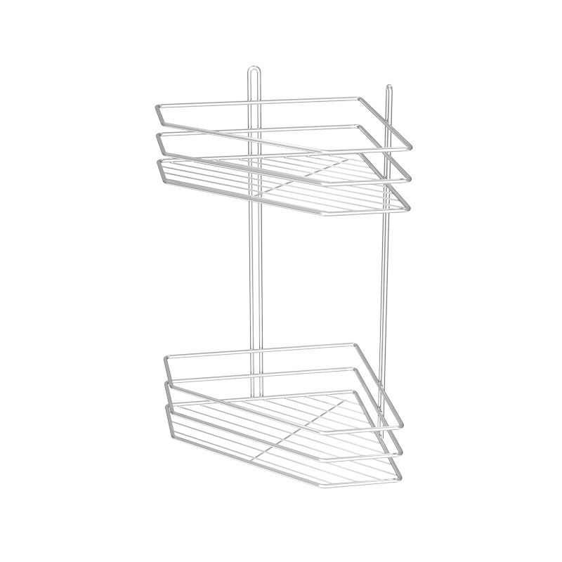 Полочка металл двухъярусная угловая, настенная предназначена для хранения банных принадлежностей, предметов личной гигиены и других необходимых мелочей, можно использовать в ванной, на кухне, в прихожей, в детской или другом удобном месте. Полочка крепится к стене при помощи шурупов, на дне полочек расположены отверстия, которые позволяют стекать воде при попадании на изделие.