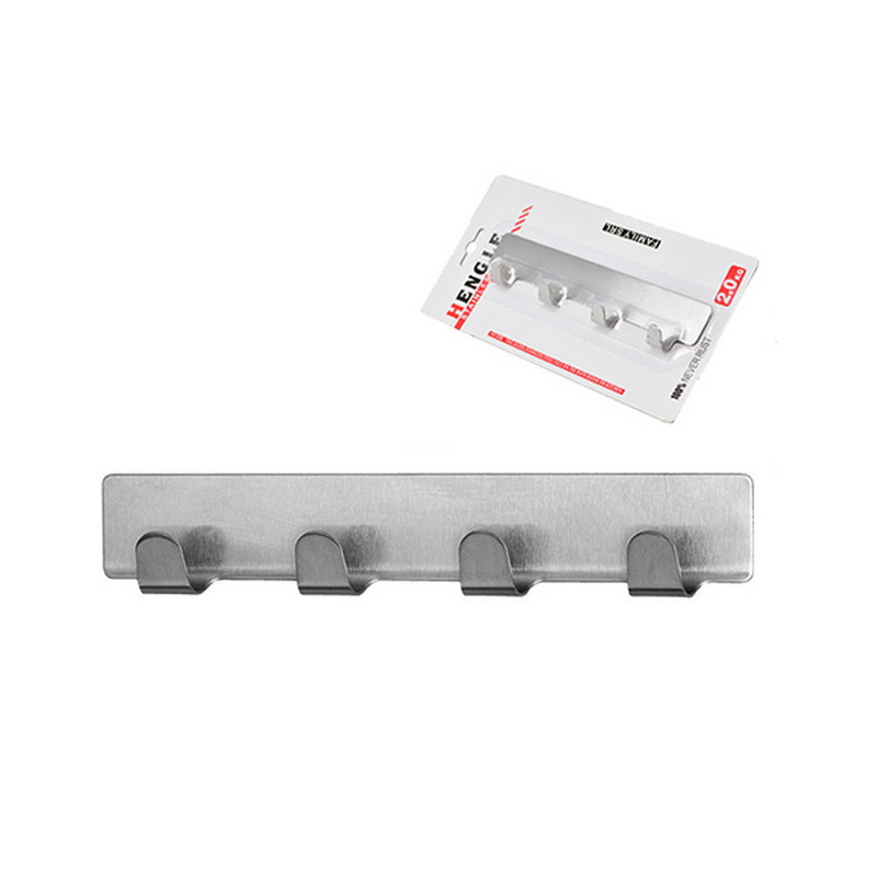 Вешалка самоклейка на планке 4 крючка R84683 на блистере хром 16х35см