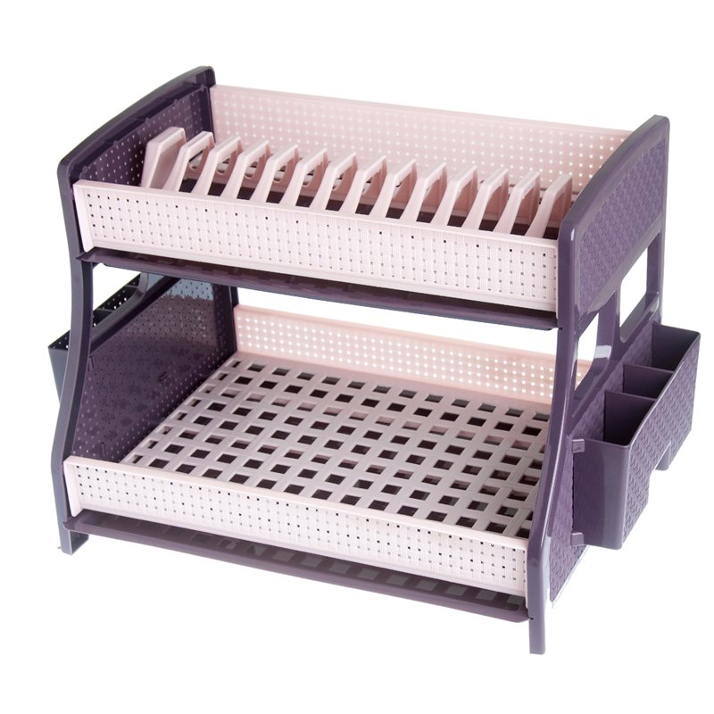 Сушилка для посуды 2-яр Плетенка два поддона в коробке пудра-баклажан