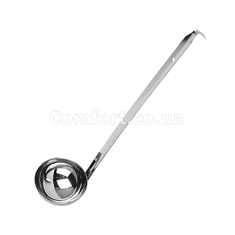 Половник - это кухонное приспособление для разливания жидкой пищи, которое необходимо на любой кухне. В каждом доме, столовой, ресторане имеется половник для разлива первых блюд, соусов, компотов, киселей и других жидкостей. Данная модель половника изготовлена из высококачественной нержавеющей стали, которая не окисляется и не впитывает посторонние запахи. Половник металлический большого размера, имеет длинную ручку, удобную для подвешивания. Прочный и долговечный нержавеющий половник удобный и компактный, не занимает много места. Стильный половник из нержавеющей стали станет отличным помощником при подаче соусов, супов и прочих жидких блюд. Лаконичный классический дизайн половника подойдет к интерьеру каждой кухни. Объем 354мл. Длина 38,5см.