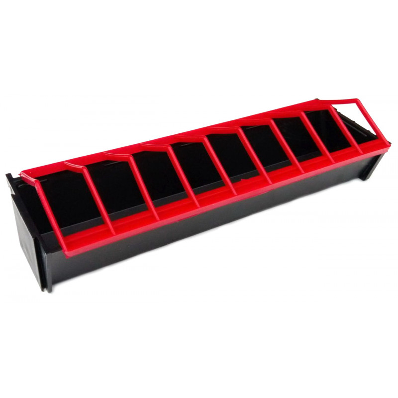 Кормушка для птицы пластиковая, лоткового типа, применяется для кормления кур, цыплят, перепелов, утят, гусят, индюшат и другой домашней птицы сухими и влажными кормами. Кормушка для птицы состоит из двух частей: удлиненного лотка и секционной ограничительной решетки. Консистенция корма, засыпаемая в кормушку, не имеет большого значения. Она может быть сухой или влажной. Чтобы избежать разгребания корма, предотвратить давку во время кормления, кормушка оснащается специальной решеткой. Она прочно закреплена на лотке, и птица вынуждена выстраиваться друг возле друга для кормления. Также решетка выполняет и другую функцию — предотвращает загрязнение пищи птичьим пометом.