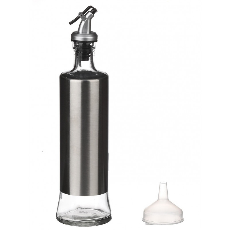 Емкость для масла изготовлена из толстостенного стекла и нержавеющей стали, которая не вступает в реакцию, не изменяет вкус продуктов. Узкое горлышко препятствует проникновению воздуха, оснащена плотной резиновой пробкой. Емкость дозатор для масла комплектуется лейкой воронкой.