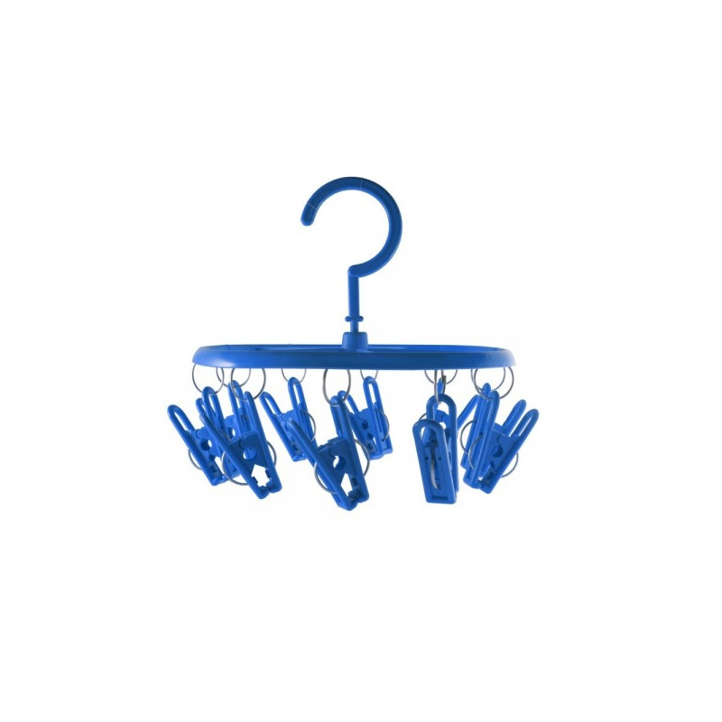 Вешалка с прищепками 10 штук предназначена для сушки небольших вещей: носков, носовых платочков, белья и одежды. Круглая вешалка позволяет быстро высушить большое количество предметов, занимая минимальное пространство. Вертушка снабжена прочными прищепками, которые прекрасно держат белье, не повреждая его. Вешалку можно повесить на обычную веревку, а также на любую перекладину. Вертушка с прищепками снабжена дополнительным крючком, на который ее также можно повесить. Круглая вешалка с прищепками легко складывается. Корпус, крючки и прищепки вертушки изготовлены из цветной пластмассы, пружины из стали.
