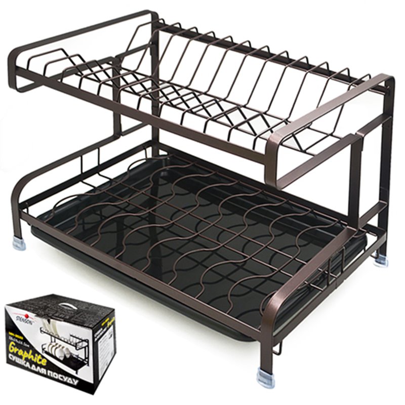 Сушилка для посуды 2-яр MH-3533 черная в коробке 38х24х26,5см