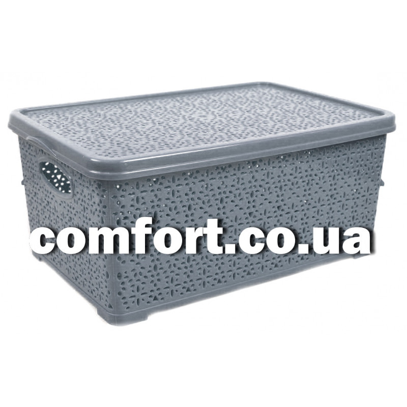 Корзина Basket 7л с крышкой Мереживо 28х19х12,5см серый