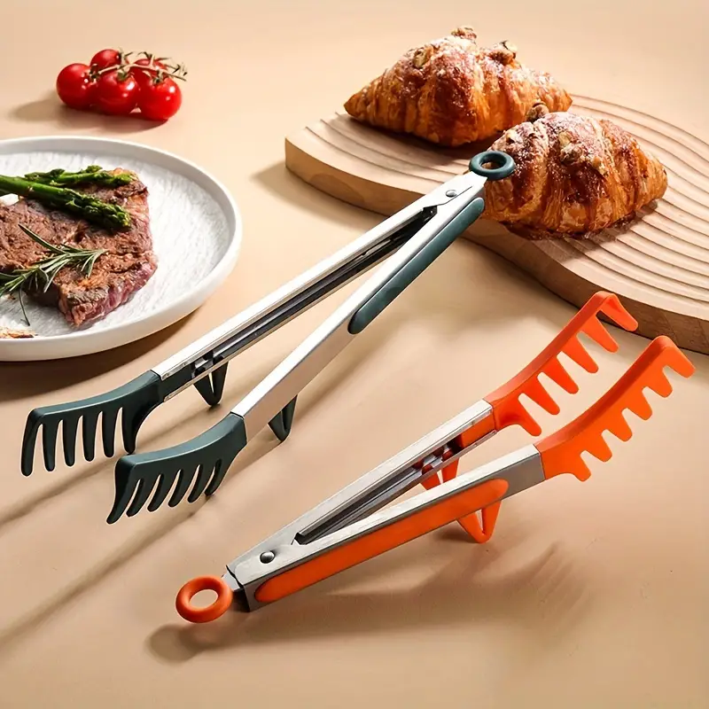 Универсальные щипцы подходят для большинства операций на кухне. Их можно использовать для накладывания самых разных изделий: порционных кусков, салатов, ими удобно переворачивать при жарке мясо, котлеты, сырники, вынимать продукты из горячей воды или масла. Кухонные щипцы изготовлены из нержавеющей стали с силиконовыми накладками, имеют широкие захваты. Приспособления не царапают поверхность, термостойкие и долговечные. Они помогут там, где не справится обычная кулинарная лопатка.