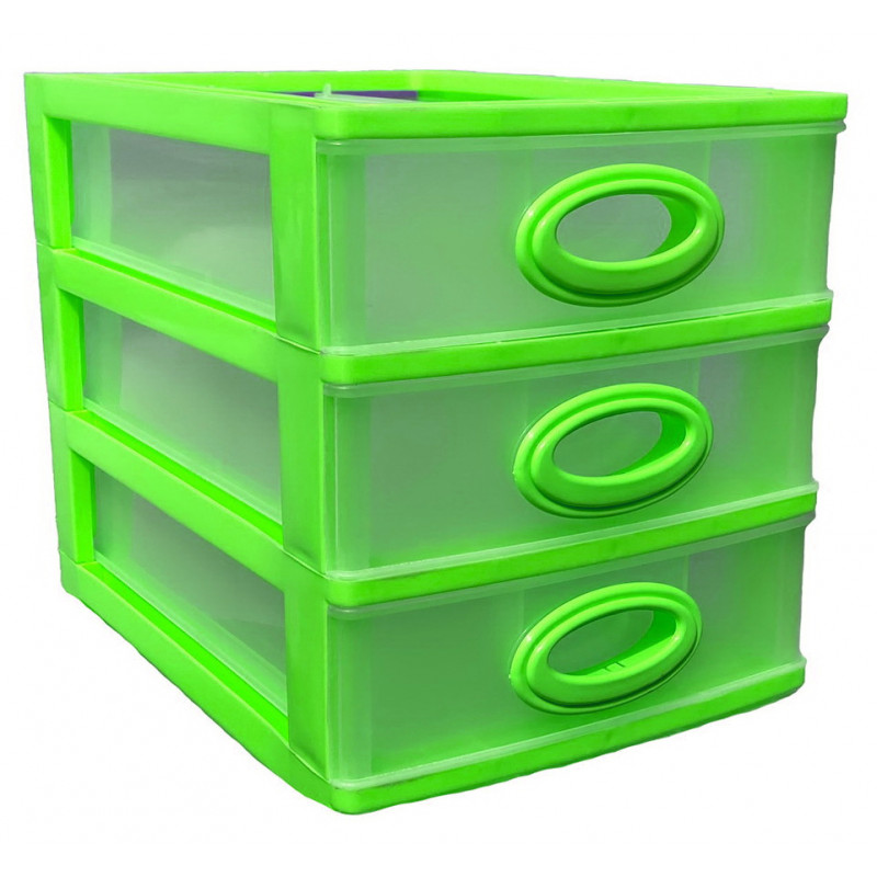 Комодик мини качество имеет три прозрачных выдвижных ящика, в которые легко помещаются все необходимые мелочи. Комодик настольный используется для хранения офисных канцелярских принадлежностей, предметов для творчества, цветных карандашей, детских игрушек, предметов личной гигиены, косметики, салфеток и других необходимых мелочей.
