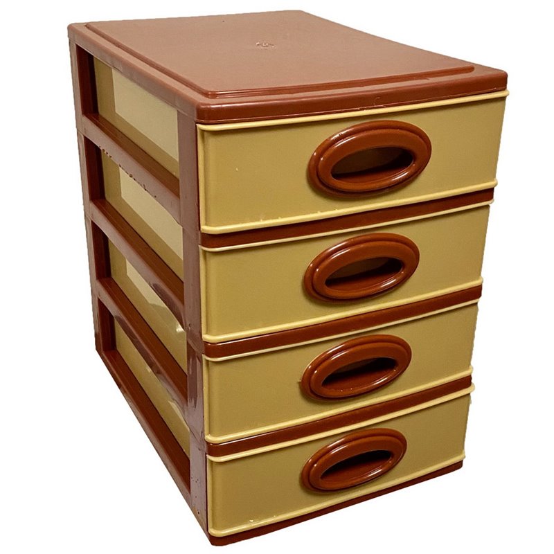 Комодик мини качество имеет четыре прозрачных выдвижных ящика, в которые легко помещаются все необходимые мелочи. Комодик настольный используется для хранения офисных канцелярских принадлежностей, предметов для творчества, цветных карандашей, детских игрушек, предметов личной гигиены, косметики, салфеток и других необходимых мелочей.