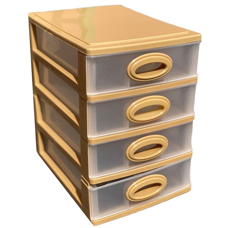 Комодик мини качество имеет четыре прозрачных выдвижных ящика, в которые легко помещаются все необходимые мелочи. Комодик настольный используется для хранения офисных канцелярских принадлежностей, предметов для творчества, цветных карандашей, детских игрушек, предметов личной гигиены, косметики, салфеток и других необходимых мелочей.