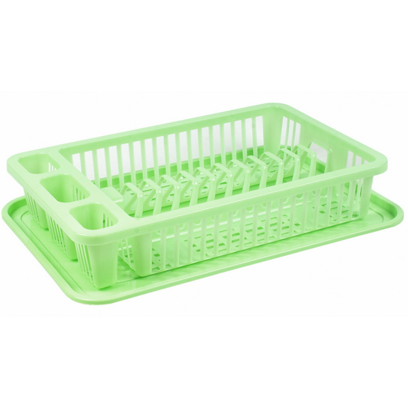 Сушилка для посуды пластмассовая необходима на каждой кухне, предназначена для сушки и хранения посуды, удобная и компактная, существенно экономит место на кухне, можно разместить на столе, в шкафу или другой удобной поверхности. Сушилка изготовлена из цветной пластмассы, имеет отсеки для тарелок и столовых приборов, нижний поддон легко вынимается и моется при необходимости.
