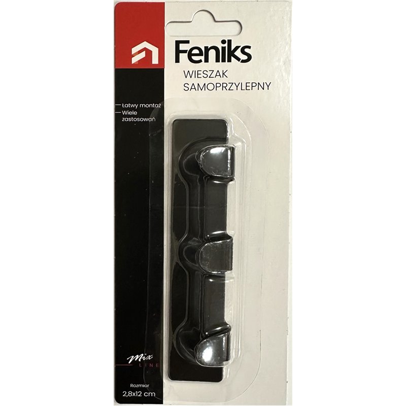 Вешалка самоклейка на планке 3 крючка 74273 на блистере черный