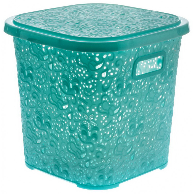 Бак корзинка 15л R ажур с крышкой, предназначена для хранения предметов, мелких вещей, отлично подойдет для хранения белья, детских товаров, игрушек, косметики, канцелярских или швейных принадлежностей, и других полезных мелочей. Контейнер изготовлен из высококачественного цветного пластика, безопасного для здоровья, декорирован в виде ажурного узора. Конструкция органайзера представляет собой прямоугольный контейнер, на боковых стенках имеются отверстия для циркуляции воздуха, с их помощью корзину удобно переносить. Корзина ажур укомплектована крышкой, которая защищает вещи от пыли и грязи.