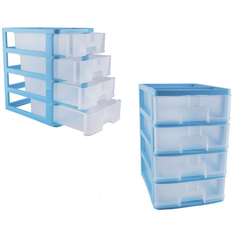 Комодик мини настольный большой имеет четыре прозрачных выдвижных ящика, в которые легко помещаются все необходимые мелочи. Комодик используется для хранения офисной бумаги формата А4, в один ящик вмещается до 500 штук листов, так же удобно складывать канцелярские принадлежности, предметы для творчества, цветные карандаши, детские игрушки, предметы личной гигиены, косметику, салфетки и другие необходимые мелочи. Комод мини изготавливают из цветной высококачественной пластмассы. Пластиковый мини комодик практичный и компактный, устойчив к перепадам температуры, что позволяет размещать его в ванной, на кухне, в детской, в кладовой комнате и в любом другом необходимом помещении. Комодик удобный и быстро собирается, а благодаря незначительному весу его можно легко переносить в любую комнату. Мини комодик помогает упорядочить мелкие вещи, это необходимый предмет для тех, кто любит порядок и предпочитает, чтобы каждая вещь имела свое место.