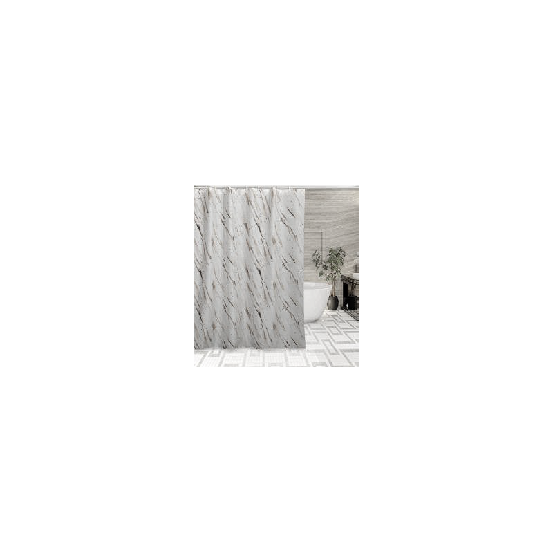 Тканевая штора для душа с водоотталкивающей пропиткой, предназначена специально для помещений с повышенной влажностью. Износостойкий материал не линяет и не выцветает, можно стирать в стиральной машине при температуре 40°C, шторка быстро сохнет и имеет долгий срок эксплуатации. Тканевая шторка с удобными размерами охватывает ванну полностью, поэтому хорошо защищает от разбрызгивания воды, верхний край шторки с отверстиями для колец. Из-за лёгкого строения полотна, штора быстро подвешивается, а благодаря качественным пластиковым кольцам плавно и мягко перемещается по карнизу. Тканевая штора быстро и легко открывается, закрывается и становится на нужное место.