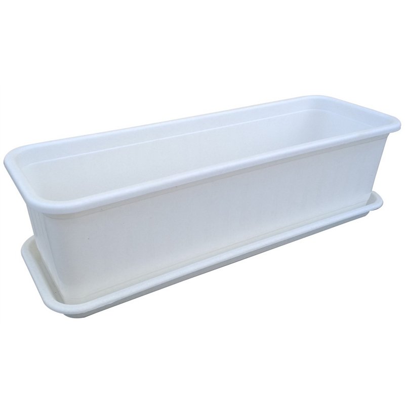 Балконный ящик ВВ узор 49х16 с подставкой белый мрамор