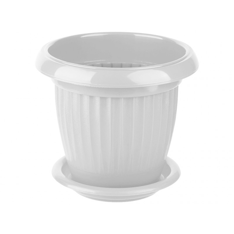 Вазон круглый 190 Кс 2,0л ребро с подставкой белый