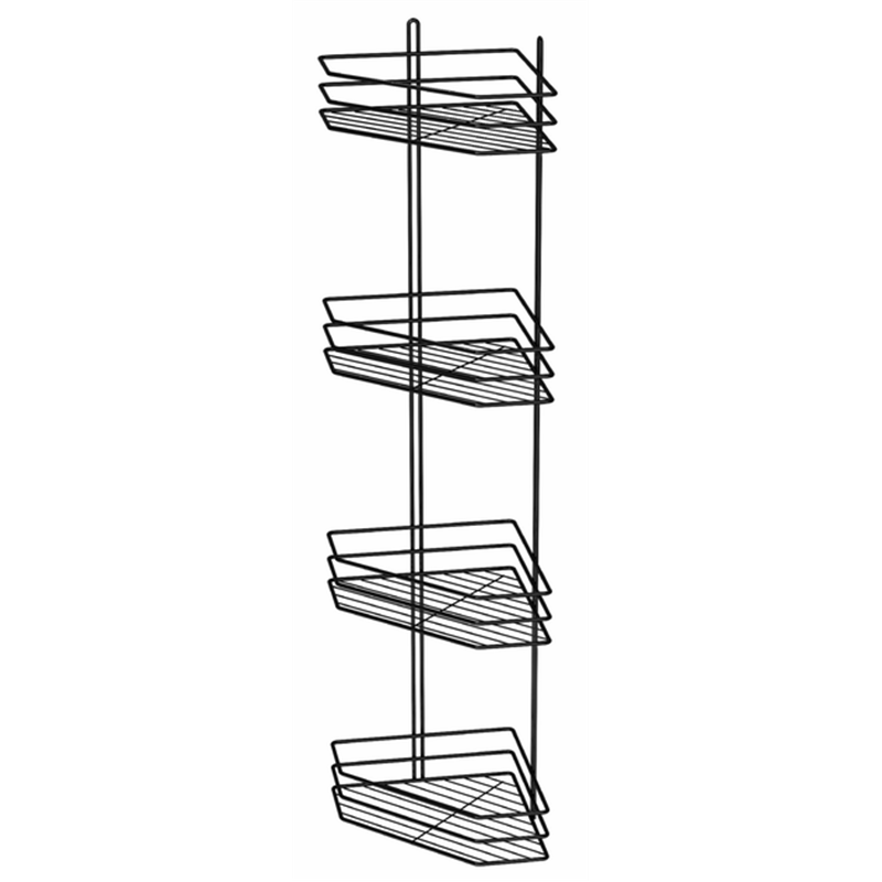 Полочка металл четырехъярусная угловая 3-контура, настенная предназначена для хранения банных принадлежностей, предметов личной гигиены и других необходимых мелочей, можно использовать в ванной, на кухне, в прихожей, в детской или другом удобном месте. Полочка крепится к стене при помощи шурупов, на дне полочек расположены отверстия, которые позволяют стекать воде при попадании на изделие. Угловая полка удобная, компактная и вместительная.