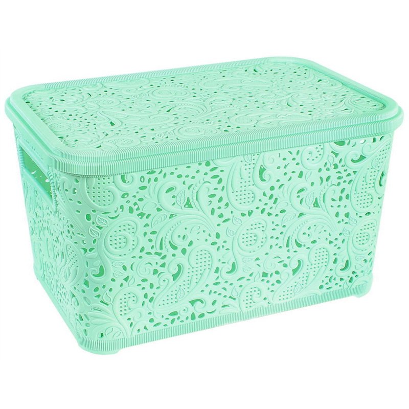 Дизайн корзинки ажур для хранения отличается яркостью, оригинальностью имеет уникальный вид. Пластиковая корзина с крышкой выполнена в виде ажурного узора. Органайзер для хранения ажур с крышкой имеет широкий ассортимент цветов. Корзинка для хранения ажур с крышкой компактная, легкая, прочная и вместительная, максимально повышает уровень удобства, не требует особого ухода. Корзинка ажурная - стильный аксессуар для каждого дома. Практичная корзинка ажур для хранения необходима в каждом доме, она не оставит Вас без внимания.