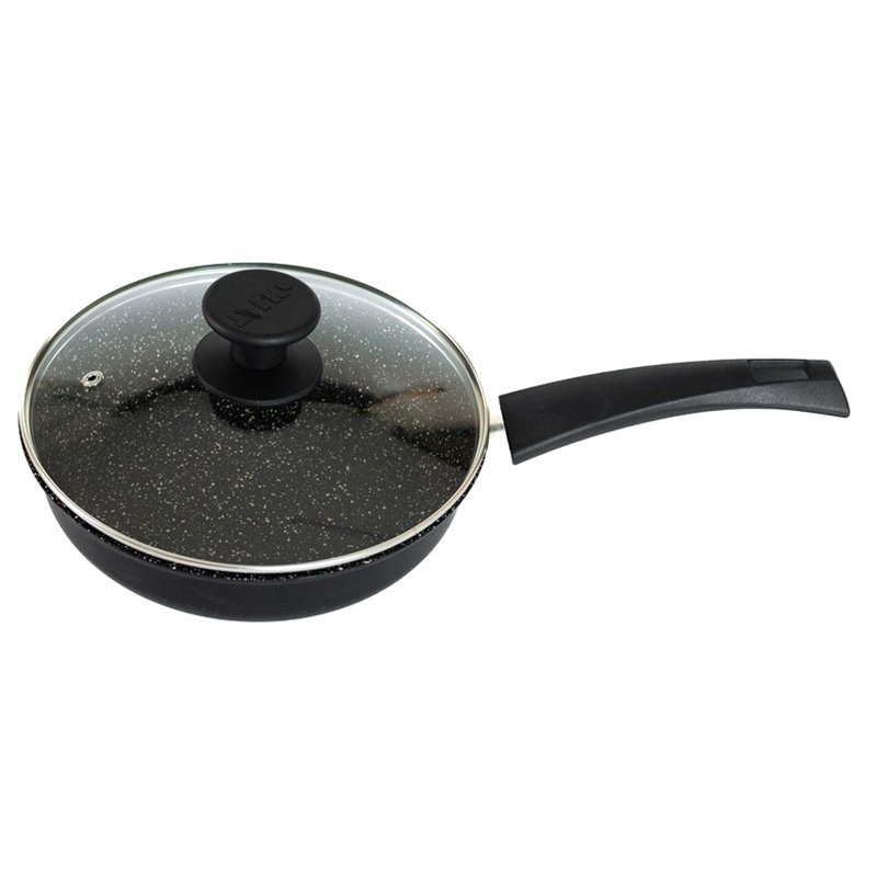 Сковорода алюминиевая антипригарная AS40223 со стеклянной крышкой 22х5,8см черный мрамор