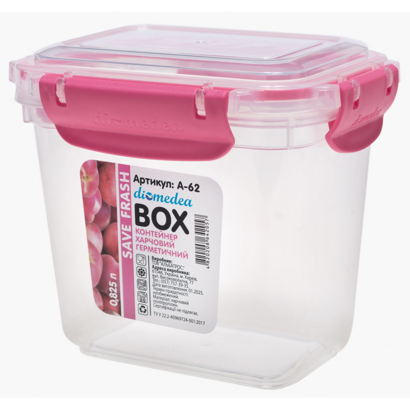 Контейнер прозрачный 0,825л с герметичной крышкой, изготовлен из высококачественной пищевой пластмассы, которая может контактировать с пищей, абсолютно безопасна для здоровья, не содержит вредных веществ, не впитывает посторонние запахи и не имеет своего. Емкость для продуктов предназначена для хранения и транспортировки свежих и замороженных продуктов, ягод, фруктов, овощей, а также удобно использовать для разогрева пищи в микроволновой печи. Боксы контейнеры из пищевого пластика с защелками незаменимы для тех, кто любит отдыхать на природе. Емкость комплектуется крышкой, которая плотно закрывается, это препятствует случайному открытию крышки.