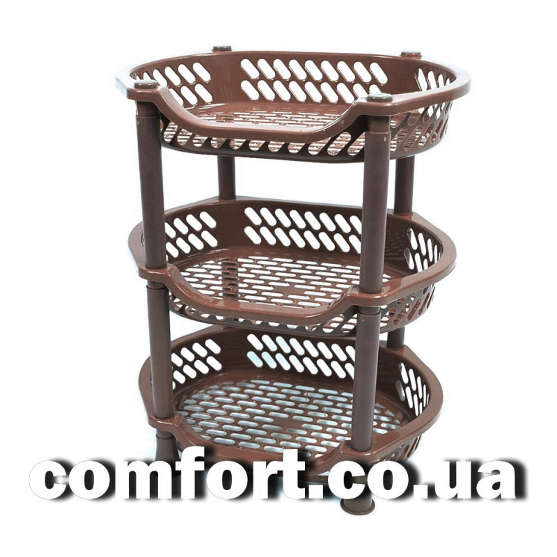 Органайзер для хранения имеет устойчивую конструкцию, при необходимости можно легко перемещать по дому. Универсальная этажерка компактная и вместительная, имеет три полочки с перфорированными стенками, изготовлена из цветной качественной пластмассы. Пластиковая этажерка для овощей не требует особых условий эксплуатации, легко моется и прослужит долгую службу при бережной эксплуатации. Сфера использования овальной тройной этажерки не ограничена, такая полочка просто не заменима в быту. Стильный и красивый дизайн полочки этажерки без проблем впишется в любой интерьер.