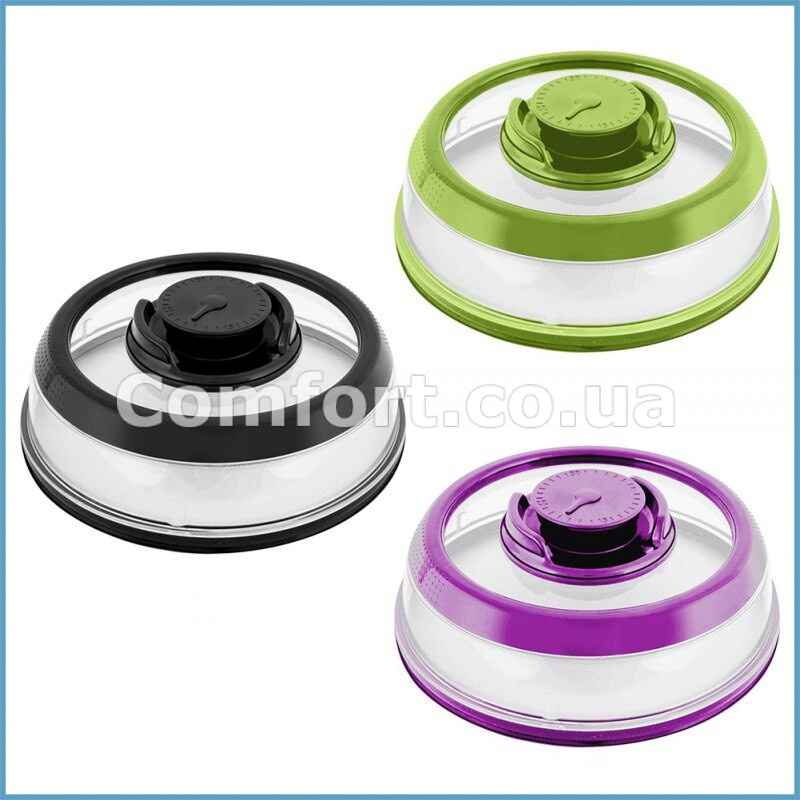 Вакуумная крышка для продуктов с силиконовым ободком практичная и необходимая вещь на каждой кухне, благодаря ей Вам больше не нужно перекладывать еду в судочки и накрывать тарелками или пищевой пленкой. Универсальная вакуумная крышка фиксируется прямо на тарелке за счет клапана, который при открытии вытесняет воздух. Вакуумная крышка прозрачная с цветным ободом, позволяет легко просматривать содержимое, защищает свежесть, вкус и аромат блюд и продуктов. Чтобы снять вакуумную крышку, достаточно просто открыть клапан. Универсальная вакуумная крышка изготовлена из прочного, пищевого силикона, который не впитывает запахи и не имеет своего, стойкий к высоким и низким температурам. Вакуумную крышку можно использовать в микроволновой печи, в холодильнике и морозильной камере, удобно мыть в посудомоечной машине. Яркие цвета вакуумных крышек создадут уют и радостное настроение на Вашей кухни. Размеры: 19х7,5см.