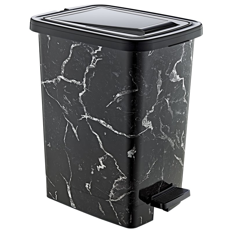 Ведро с педалью OZER-S-111-1х129 SLIM 15л черный мрамор