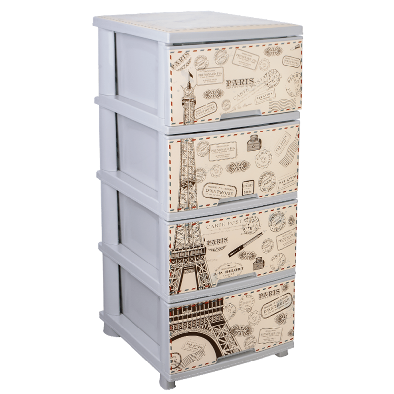 Комод алеана 4-яр с рисунком 09404 Париж кремовый