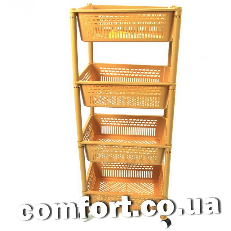 Этажерка прямоугольная 4-яр Кс на колесиках бежевый