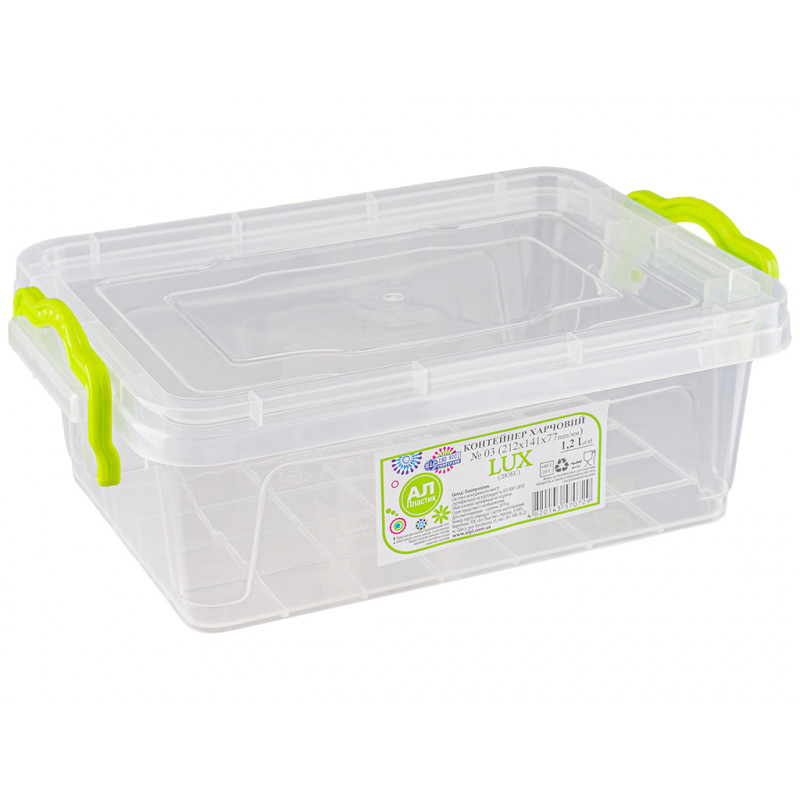 Бокс контейнер пластмассовый LUX 1,2л универсальный, пищевой с ручками защелками, предназначен для хранения, транспортировки продуктов или готовых блюд и их заморозки или разогрева. Емкость прямоугольной формы комплектуется крышкой, которая плотно закрывается и дополнительно фиксируется ручками контейнера, это препятствует случайному открытию крышки. Прозрачные стенки судочка позволяют видеть содержимое в нем. Бокс изготовлен из высококачественного, пищевого пластика, который может контактировать с пищей, абсолютно безопасный для здоровья, не содержит вредных веществ. Судочек пищевой с ручками защелками подходит для использования в посудомоечной машине, в холодильнике, в морозильной камере, микроволновой печи.