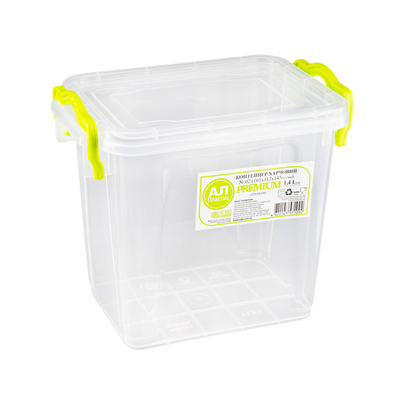 Бокс контейнер пластмассовый высокий 1,4л универсальный, пищевой с ручками защелками, предназначен для хранения, транспортировки продуктов или готовых блюд и их заморозки или разогрева. Емкость прямоугольной формы комплектуется крышкой, которая плотно закрывается и дополнительно фиксируется ручками контейнера, это препятствует случайному открытию крышки. Прозрачные стенки судочка позволяют видеть содержимое в нем. Бокс изготовлен из высококачественного, пищевого пластика, который может контактировать с пищей, абсолютно безопасный для здоровья, не содержит вредных веществ. Судочек пищевой с ручками защелками подходит для использования в посудомоечной машине, в холодильнике, в морозильной камере, микроволновой печи.