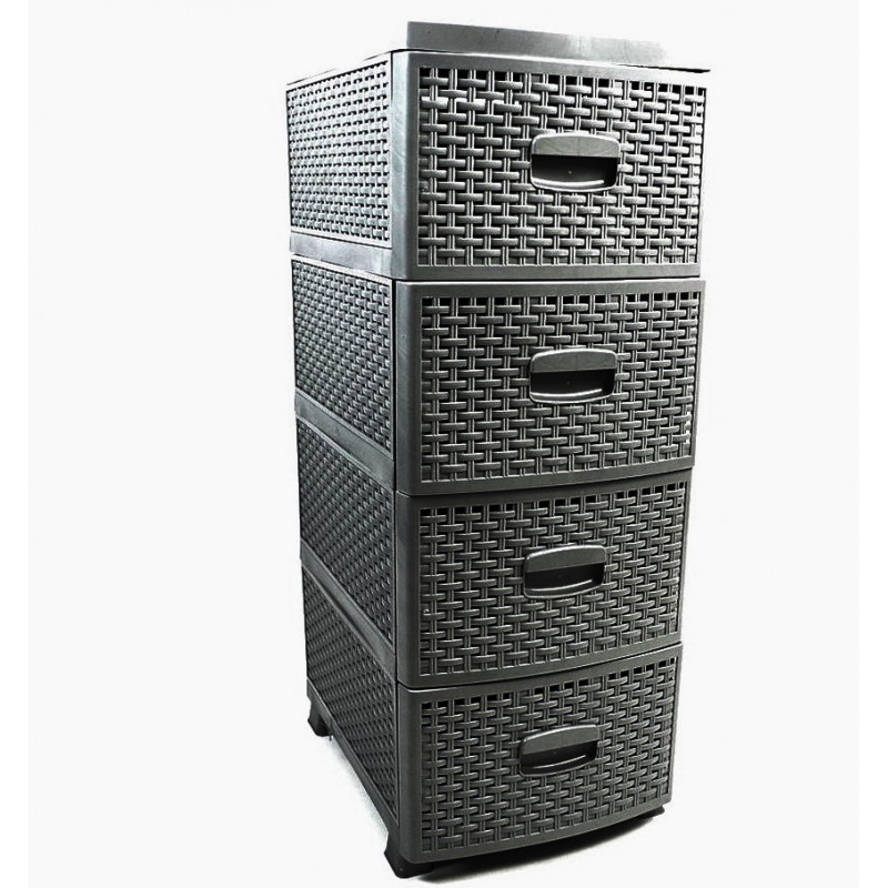 Комод ротанг пластмассовый имеет четыре выдвижных ящика, в которые легко помещаются все необходимые вещи. Комод используется для хранения одежды, постельного белья, детских игрушек, предметов личной гигиены, банных принадлежностей, косметики, полотенец, салфеток и других необходимых мелочей. Напольный комод изготавливают из цветной высококачественной пластмассы, декорируют под плетение ротанг. Пластиковый комод прочный, не боится влаги, устойчив к перепадам температуры, что позволяет устанавливать его в ванной, на кухне, в детской, в кладовой комнате и в любом другом необходимом помещении. Комод ротанг быстро собирается, легко моется, благодаря незначительному весу его можно легко переместить в любую комнату. Удобный, стильный и практичный комод органайзер помогает упорядочить вещи, сохранять порядок в доме. Многофункциональный комод – необходимый предмет для тех, кто любит порядок и предпочитает, чтобы каждая вещь имела свое место. Комод ротанг идеально подойдет к любому дизайну в Вашем доме. Размеры: 90х35х44см, глубина ящика 18см. Производитель: Украина.