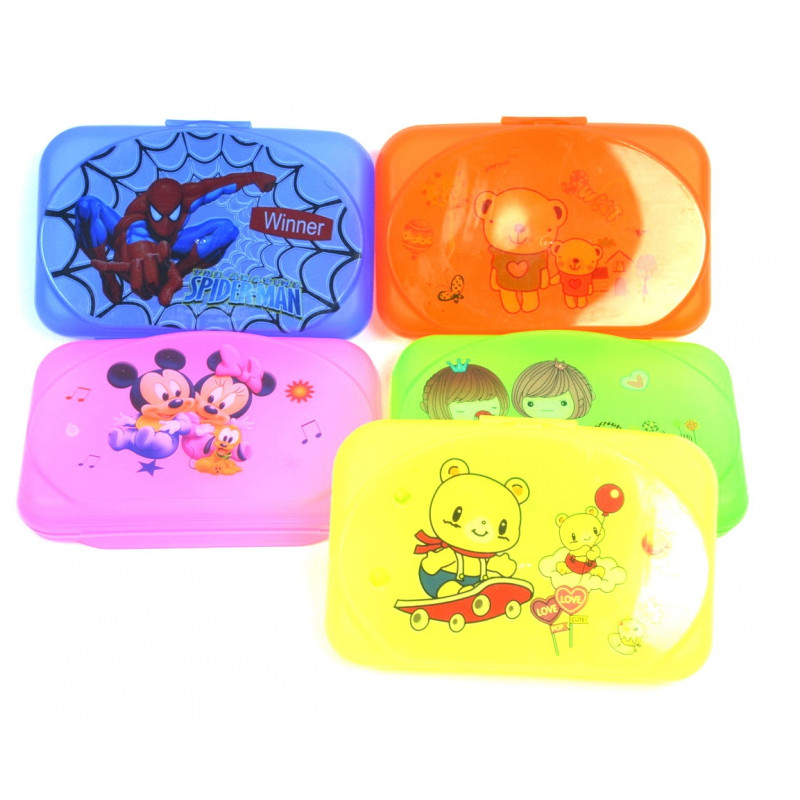 Ланч-бокс с рисунком, плоский, прямоугольной формы с защелкой изготовлен из высококачественного, пищевого, цветного пластика, который может контактировать с пищей, абсолютно безопасный для здоровья. Ланч-бокс декорирован ярким, детским рисунком, не содержит вредных веществ, не изменяет вкус продуктов и не имеет своего.