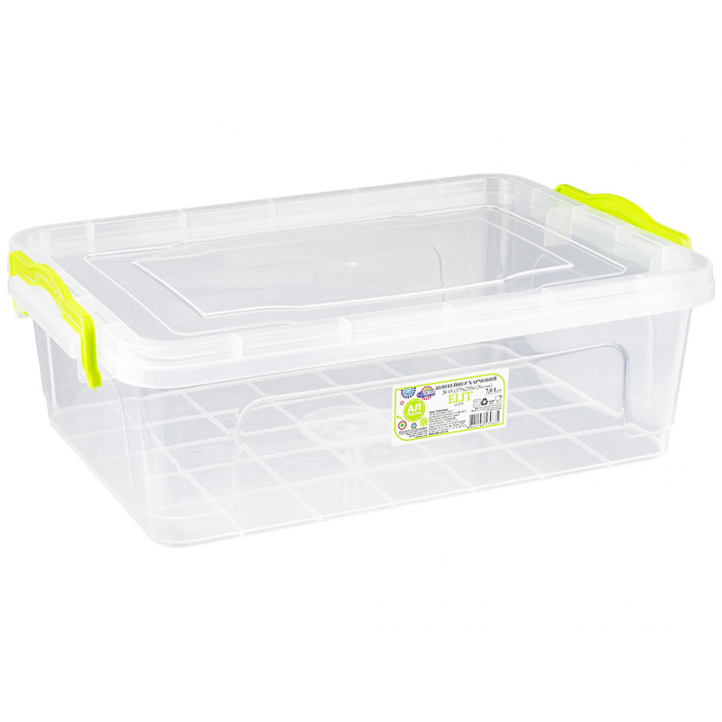 Бокс контейнер пластмассовый плоский 7л универсальный, пищевой с ручками защелками предназначен для хранения, транспортировки продуктов или готовых блюд и их заморозки или разогрева, а также может использоваться для хранения детских игрушек и других необходимых мелочей домашнего использования. Емкость прямоугольной формы комплектуется крышкой, которая плотно закрывается и дополнительно фиксируется ручками контейнера с двух сторон, это препятствует случайному открытию крышки. Прозрачные стенки судочка позволяют видеть содержимое в нем.