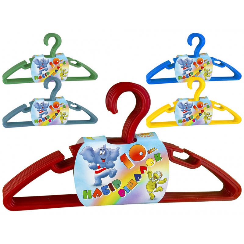 Цельнолитые детские пластмассовые плечики органайзер для одежды имеют прочную конструкцию, поперечную перекладину, по краям оснащены удобными крючками для зацепа за петельки, и отлично подходят для футболочек, топов, блузочек, рубашечек, маечек, юбочек, брюк, лёгкого платья и одежды на бретельках. Детские вешалки плечики изготовлены из прочной, качественной цветной пластмассы, в наборе 10 штук. Плечики детские для одежды из пластмассы не испортят Вашу одежду ржавчиной, как это могут сделать вешалки, изготовленные из металла или металлические крючки на деревянных плечиках.
