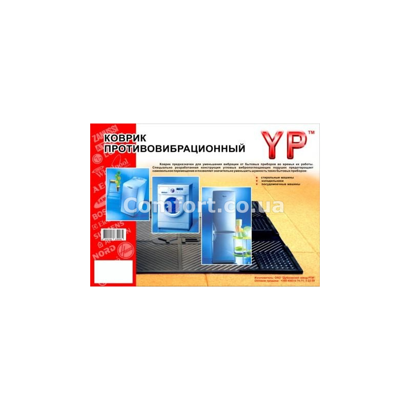 Коврик резиновый К-15 противовибрационный под стиральную машинку, холодильник, посудомоечную машину, напольный кондиционер и другую бытовую технику. Антивибрационный резиновый коврик предназначен для уменьшения вибрации от бытовых приборов во время их работы. Прорезиненное основание надежно удерживает коврик на любой поверхности, будь то паркет, ламинат, керамическая плитка или линолеум, при этом, не царапая и не повреждая ее. Специально разработанная конструкция угловых вибропоглощающих подушек резинового коврика предотвращает самовольное перемещение и позволяет значительно уменьшить шумность бытовых приборов. На нижней стороне резинового коврика находятся насечки, чтобы коврик не скользил по плитке. Коврик изготовлен из высококачественной, износостойкой резины. Такой антивибрационный резиновый коврик качественный и долговечный, его срок эксплуатации не ограничен. Размеры: 62х55х0,8см. Производитель: Украина.