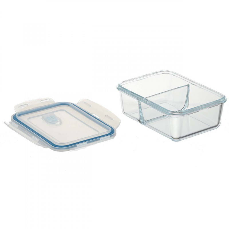 Судок стекло двойной пищевой с пластиковой крышкой прямоугольной формы. Стеклянная емкость с разделителем и пластмассовой крышкой предназначена для приготовления пищи в микроволновой и духовой печи, а также для хранения продуктов в холодильнике или морозильной камере.