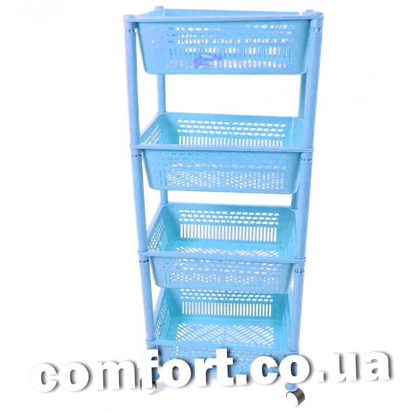 Полочку этажерку используют для хранения овощей, фруктов, банных аксессуаров, детских принадлежностей и других необходимых мелочей. Органайзер для хранения имеет устойчивую конструкцию, при необходимости можно легко перемещать по дому. Универсальная этажерка компактная и вместительная, имеет четыре полочки с перфорированными стенками, изготовлена из цветной качественной пластмассы.