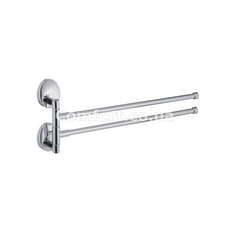 Держатель для полотенец двойной L022 является стильным аксессуаром для ванной комнаты, который организует простое поддержание чистоты и позволяет не занимать свободное пространство принадлежностями. Полотенцедержатель имеет поворотный механизм и два рожка, полотенца между собой не взаимодействуют, поэтому не помнутся и быстрее высохнут. Поворотный держатель для полотенец рожки помогает располагать используемые полотенца разных размеров и назначения. Поворотные рожки практичные и компактные минимально занимают пространство и при этом размещают большое количество предметов. Перекладины вешалки для полотенец ровные, легко двигаются по полукругу, это дает возможность удобно развесить полотенца.