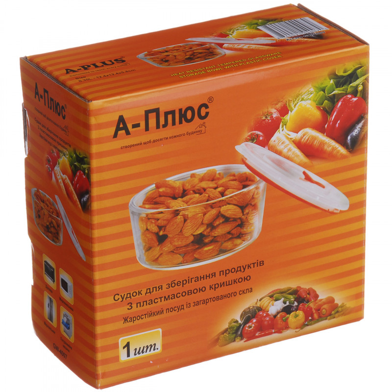 Стекло 4007 контейнер круглый с пластиковой крышкой
