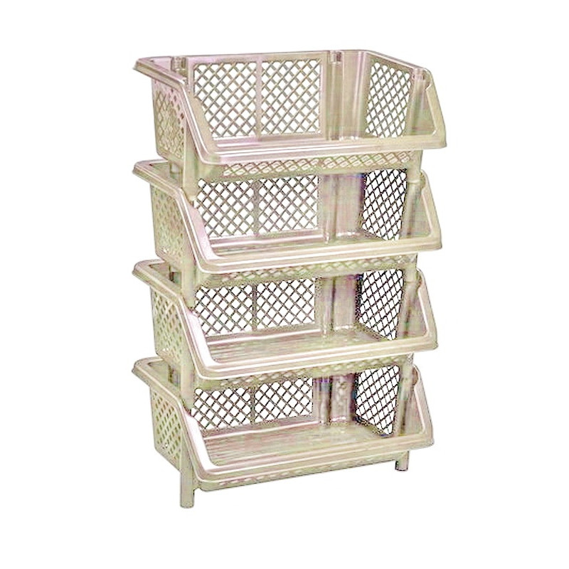 Универсальная этажерка компактная и вместительная, имеет четыре полочки с перфорированными стенками, изготовлена из цветной высококачественной пластмассы. Пластиковая этажерка для овощей не требует особых условий эксплуатации, легко моется и прослужит долгую службу при бережной эксплуатации. Сфера использования угловой этажерки не ограничена, такая полочка просто не заменима в быту. Стильный и красивый дизайн полочки этажерки без проблем впишется в любой интерьер. Действительно достойный товар супер качества!