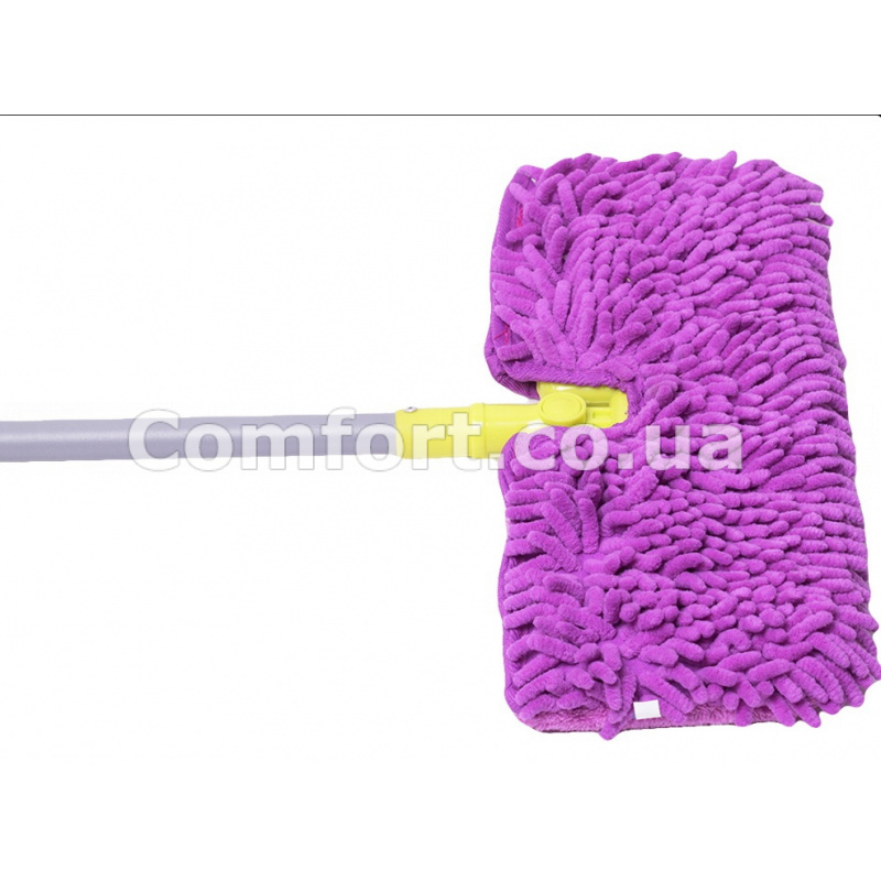 Швабра полотер двухсторонняя предназначена для уборки в помещении, можно использовать для влажной и сухой уборки. Европолотер имеет мягкую сменную насадку из микрофибры, которая при сухой уборке отлично собирает пыль, а при влажной уборке впитывает воду и грязь подобно губке, не оставляет разводов и ворсинок. Полотер оснащен удобной металлической телескопической ручкой с подвижной частью и фиксацией, которая позволяет использовать его в труднодоступных местах. Съемная насадка полотера на липучке, с одной стороны микрофибра, а с другой лапша.