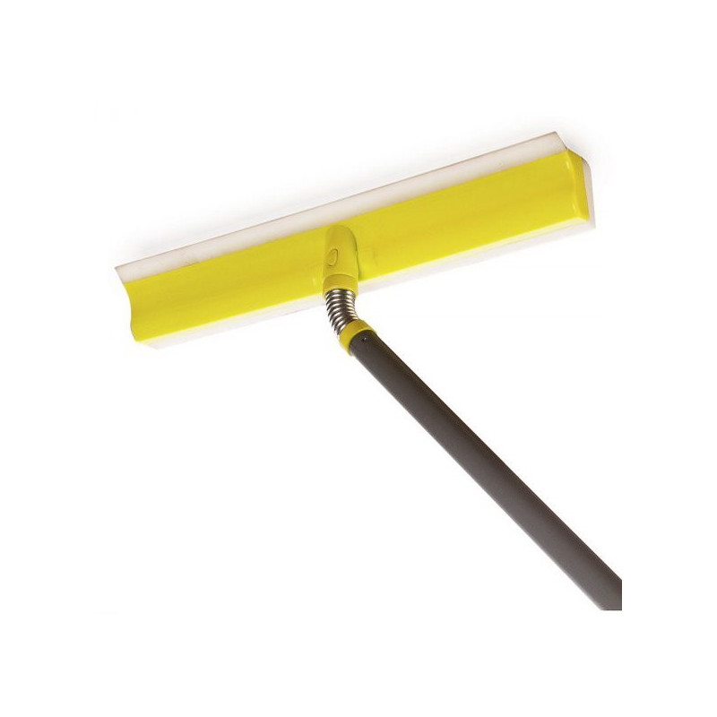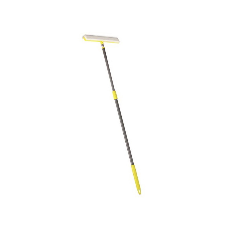 Стекломойка поворотная за счет пружины насадка вертится и принимает необходимый угол, что дает возможность использовать ее в труднодоступных местах. Благодаря пружине насадка изгибается во все стороны, повышая маневренность окномойки и увеличивает эффект мойки. Угол поворота легко регулируется, необходимо просто повернуть пружинку в нужное положение. Швабра для окон имеет телескопическую раздвижную ручку, которая регулируется по высоте, для удобного использования. Ручка держатель телескопическая изготовлена из высококачественного алюминия, что делает окномойку лёгкой и удобной в использовании. Регулируемая телескопическая ручка позволяет очищать высокие витражи, а регулируемый угол наклона рабочей поверхности сделает доступными самые сложные участки в уборке. Излишнюю влагу удаляем с помощью резинового скребка, а досконального результата достигаем при помощи насадки, которая легко устраняет любые загрязнения и разводы, хорошо впитывает влагу.