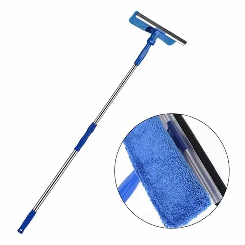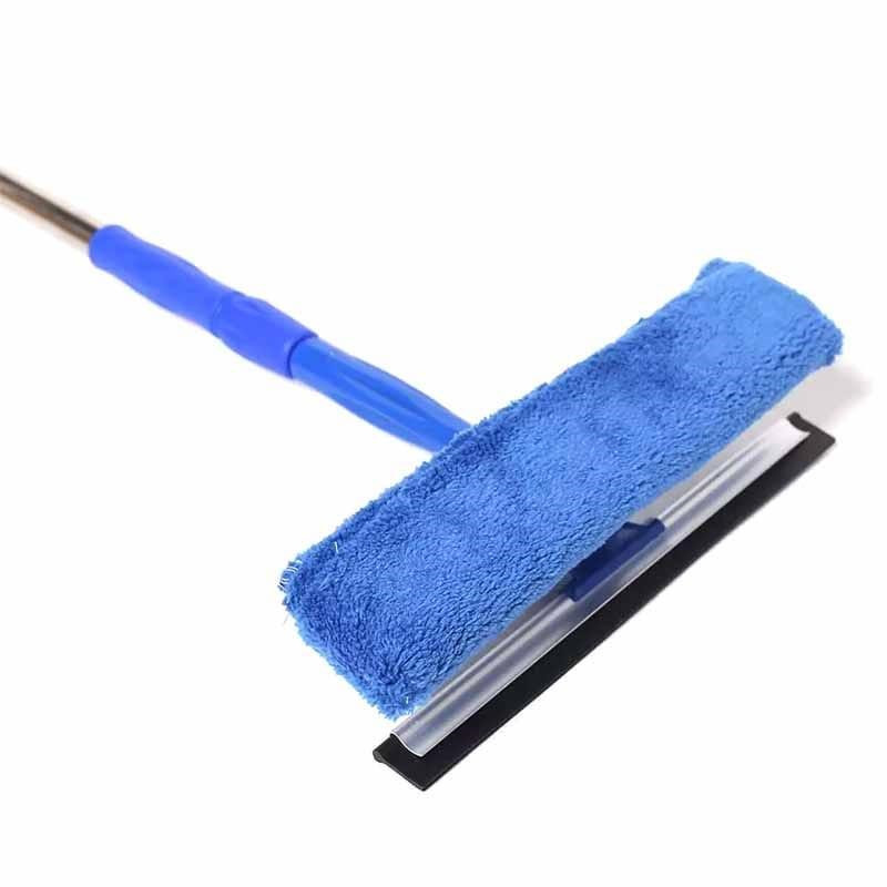 Швабра для окон имеет телескопическую раздвижную ручку, которая регулируется по высоте, для удобного использования. Ручка держатель телескопическая изготовлена из высококачественного металла, что делает окномойку лёгкой и удобной в использовании. Регулируемая телескопическая ручка позволяет очищать высокие витражи, а регулируемый угол наклона рабочей поверхности сделает доступными даже самые сложные участки в уборке. Излишнюю влагу удаляем с помощью резинового скребка, а досконального результата достигаем при помощи насадки, которая легко устраняет любые загрязнения и разводы, хорошо впитывает влагу.
