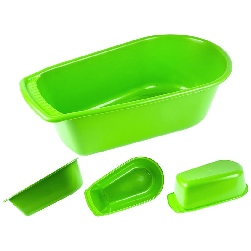 Форма детской ванночки обтекаемая и очень практичная. Достоинством ванночки для детей является удобная спинка имеющая наклон для купания малыша в положении сидя и гладкие безопасные края. Чтобы все необходимые вещи находились рядом, на ванночке есть специальное углубление выемка. Полочка выемка станет прекрасным местом для средств гигиены, мыла, губки, погремушки, соски, а также других необходимых при каждом купании принадлежностей. Все углы пластмассовой ванночки для детей закругленные для безопасности и комфорта во время купания.