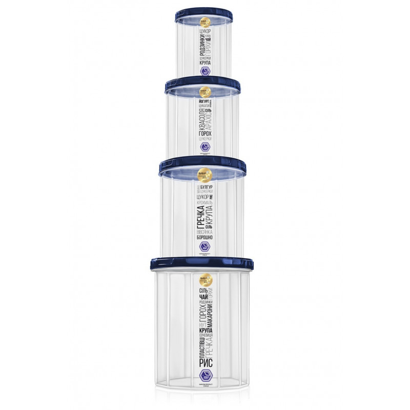 Банка для сыпучих НП набор 0,65+1+1,5+2л №108і индиго крышка