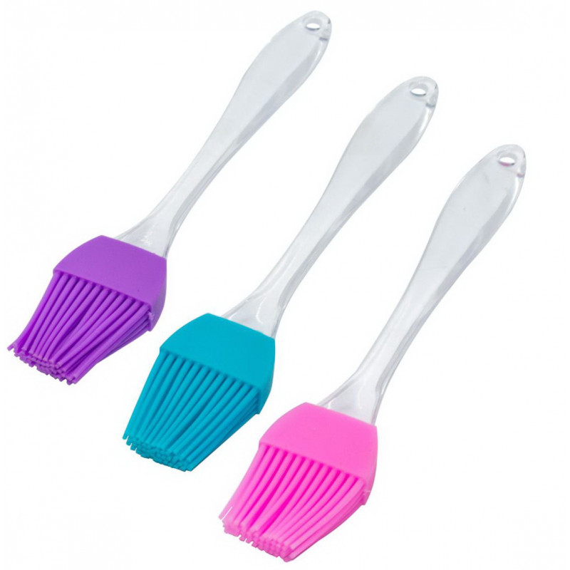 Кисточка силиконовая с прозрачной пластмассовой ручкой предназначена для смазывания формы для выпечки, противня или сковородки, коржей кремом или глазурью или других кондитерских изделий и выпечки. Кисточка изготовлена из высококачественного и термостойкого, пищевого, цветного силикона, что обеспечивает ее долговечность и надежность в использовании. Кондитерская силиконовая кисточка не плавится и не царапает посуду, подходит для использования на тефлоновых и керамических покрытиях. Кухонная силиконовая кисточка удобная и практичная, проста в применении. Кисточка из силикона легко моется, не впитывает посторонние запахи. Силиконовая кисточка компактная имеет удобную пластиковую прозрачную ручку с отверстием для подвешивания, которая не скользит в руке благодаря своей эргономичной форме. С силиконовой кисточкой легко готовить, удобно хранить, она имеет небольшой вес и оригинальный внешний вид. Силиконовая кисточка это идеальный помощник на любой кухне и отличный подарок для каждой хозяйки. Длина 21см.