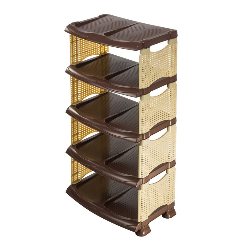 Полка для обуви необходимый предмет мебели для каждого дома. Обувная полка ротанг пластмассовая открытая предназначена для хранения обуви, позволяет освободить место, и навести порядок в прихожей и удобно разместить, всю обувь, не занимая много пространства. Обувная полка ротанг премиум-класса удобная и практичная, можно разместить в прихожей, кладовой или на балконе, легко и быстро разбирается, можно собрать любое количество ярусов, на одном ярусе помещается две пары обуви. Полка для обуви ротанг прочная и компактная, устойчива к влажности, хорошо моются. Открытая полка для обуви ротанг очень удобная, благодаря наличию в ней множества отделов, что позволяет вместить большое количество обуви. Полочка обувная изготовлена из прочной высококачественной цветной пластмассы, боковые стенки декорированы под искусственное плетение ротанг, состоит из пяти ярусов. Размеры: 48х30,5х86см. Производитель: Украина.